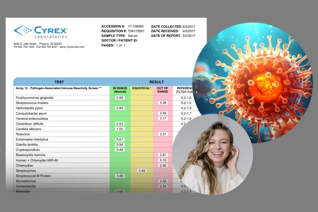 El Array 12 de Cyrex es un examen inmunológico funcional que se realiza a partir de una muestra de sangre y permite identificar si el sistema inmune sigue reaccionando frente a patógenos específicos, incluso cuando una infección ya pasó o no es detectable por pruebas convencionales.