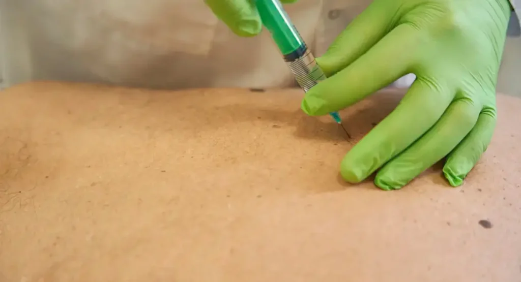 En lugar de la aguja, se aplica un medicamento en el mismo punto, potenciando la respuesta terapéutica.