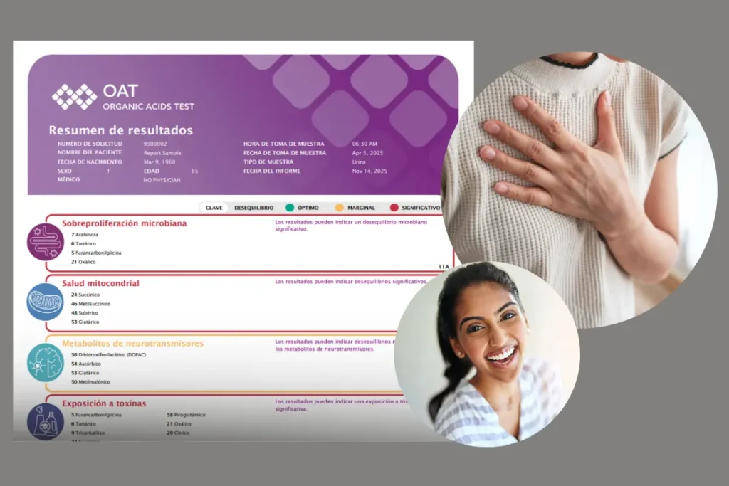 Cuando las vías metabólicas funcionan de forma óptima, estos ácidos se procesan y eliminan adecuadamente. Sin embargo, alteraciones en la función enzimática, deficiencias nutricionales o la presencia de toxinas pueden generar acumulaciones anormales, reflejadas en este examen.