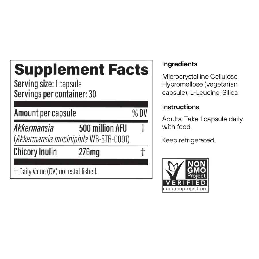 - 500 millones de unidades vivas de Akkermansia muciniphila por cápsula