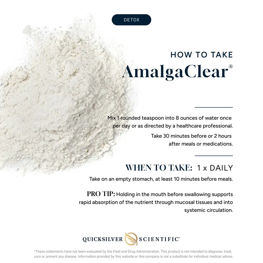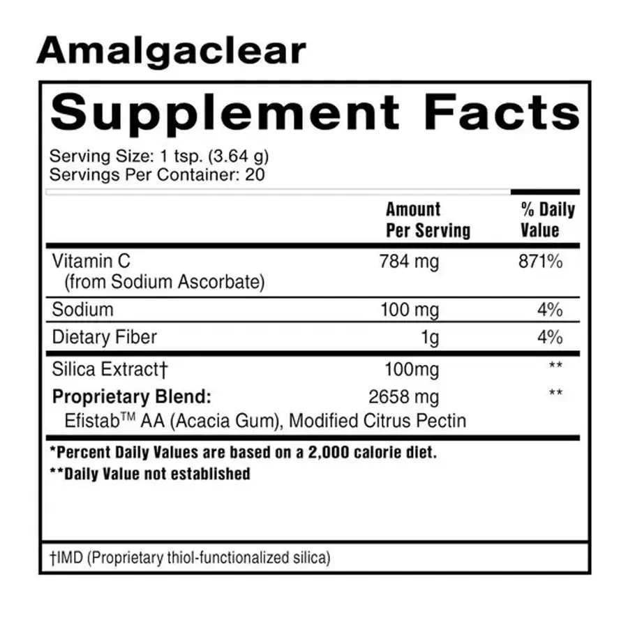 AmalgaClear® está diseñado para apoyar al cuerpo durante la eliminación de amalgamas dentales (“empastes plateados”), ayudando a detoxificar y eliminar el mercurio y otros metales pesados de forma segura.