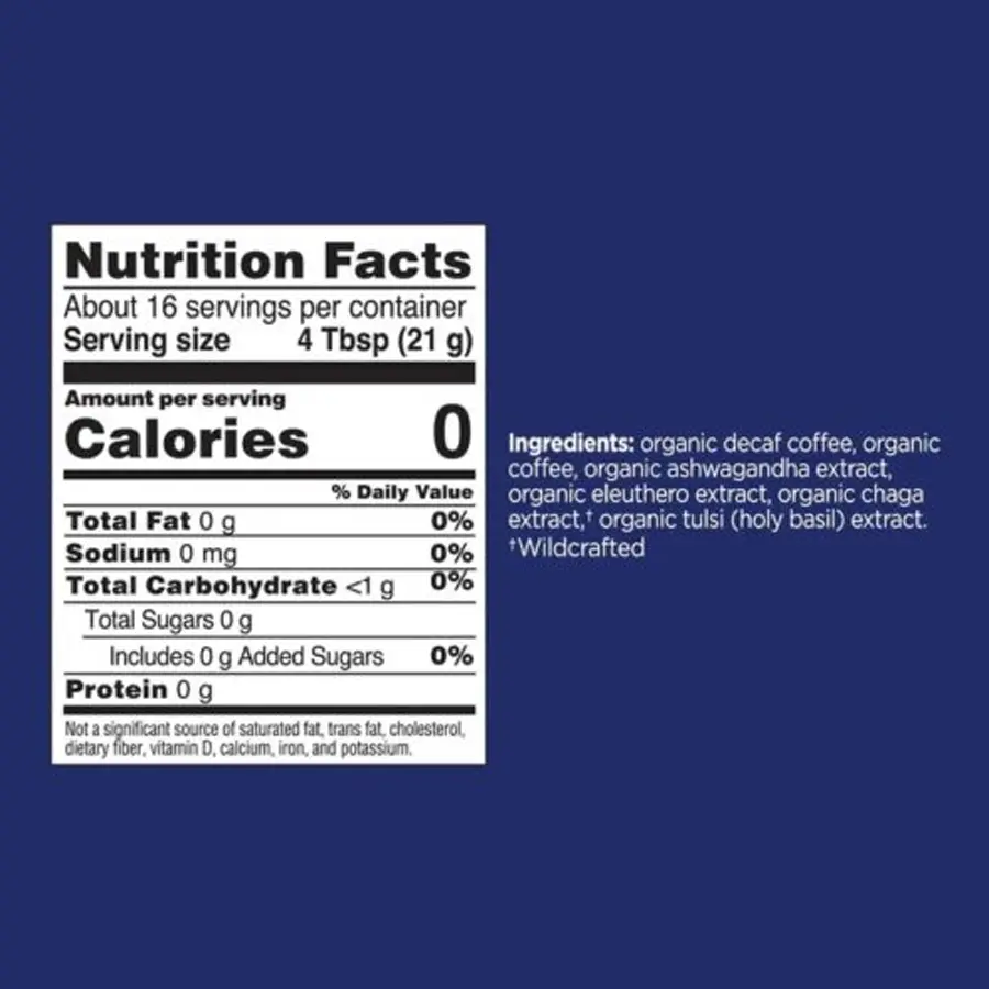 Su mezcla de café arábica orgánico de origen único se combina con adaptógenos reconocidos por favorecer la calma, el equilibrio y la resistencia al estrés, permitiendo una experiencia energizante sin picos ni caídas abruptas.