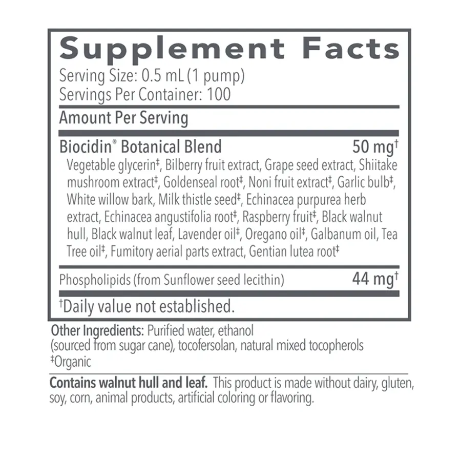 • Contiene la mezcla botánica Biocidin® con ingredientes orgánicos
