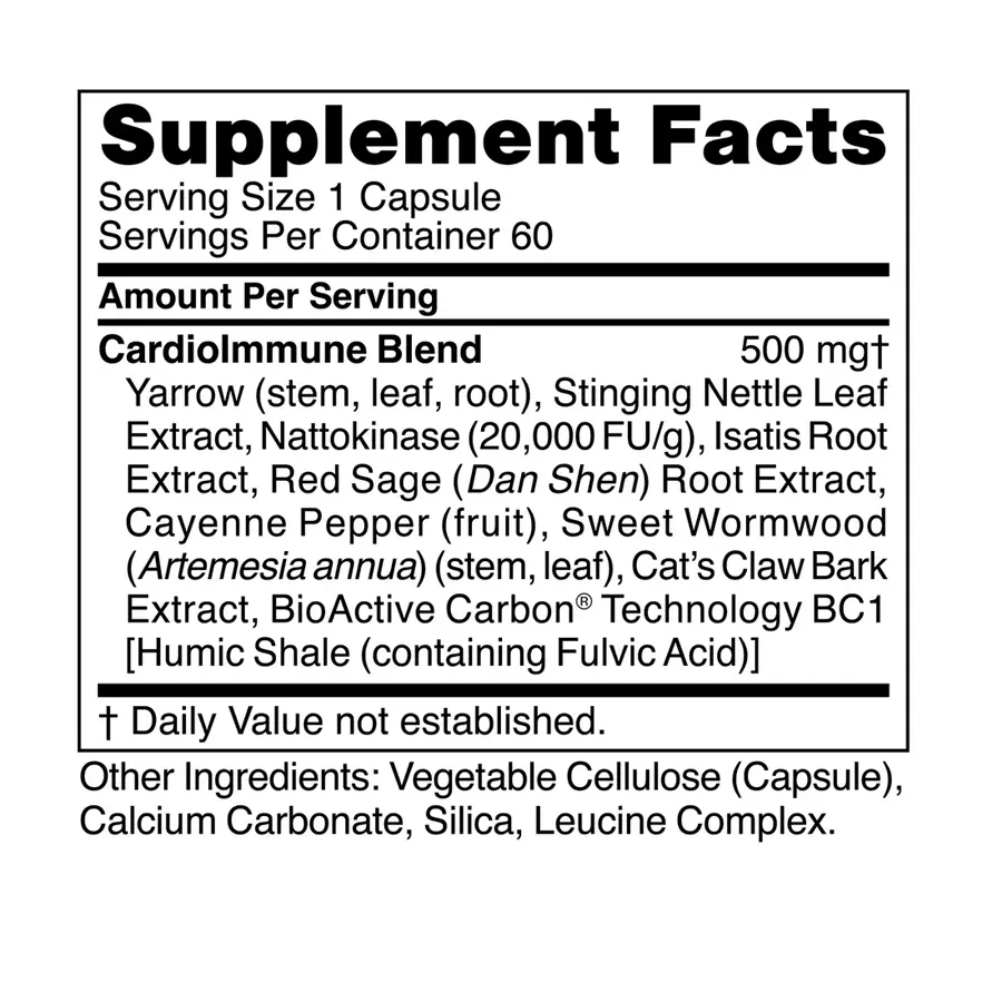 Cada cápsula de CardioImmune contiene una combinación estratégica de extractos botánicos: nattokinasa, yarrow root, stinging nettle leaf, Isatis root extract, Danshen root, cayenne pepper fruit, wormwood y cat’s claw bark extract.