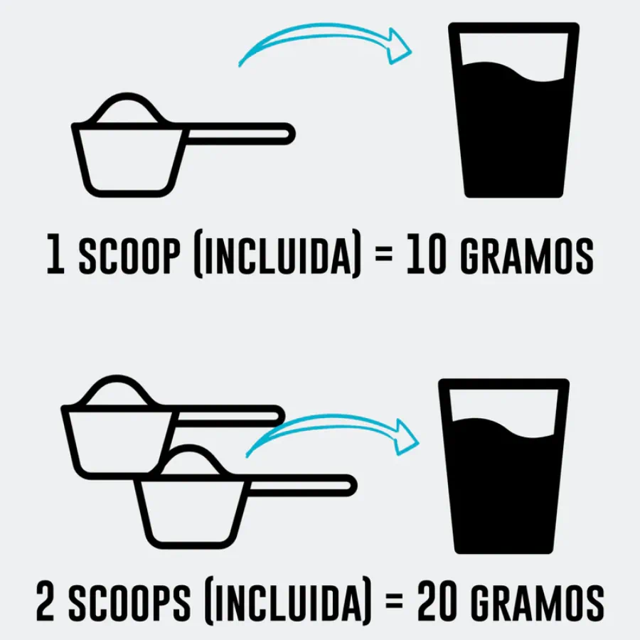Disolver una porción (10 g) en agua, café, jugo o batido. Puede tomarse en cualquier momento del día