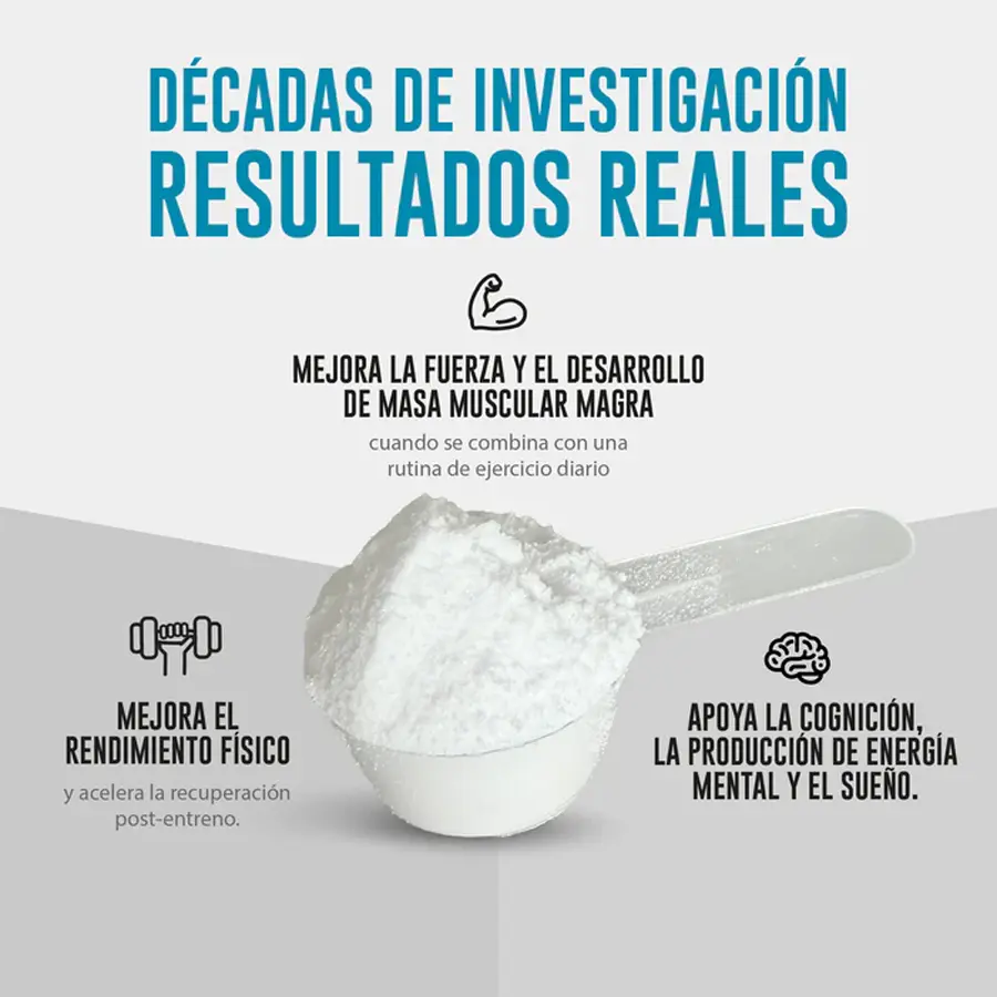 CREAFFEKT de EFFEKT es creatina monohidrato 100% pura, reconocida como la forma más estudiada, segura y efectiva a nivel mundial.