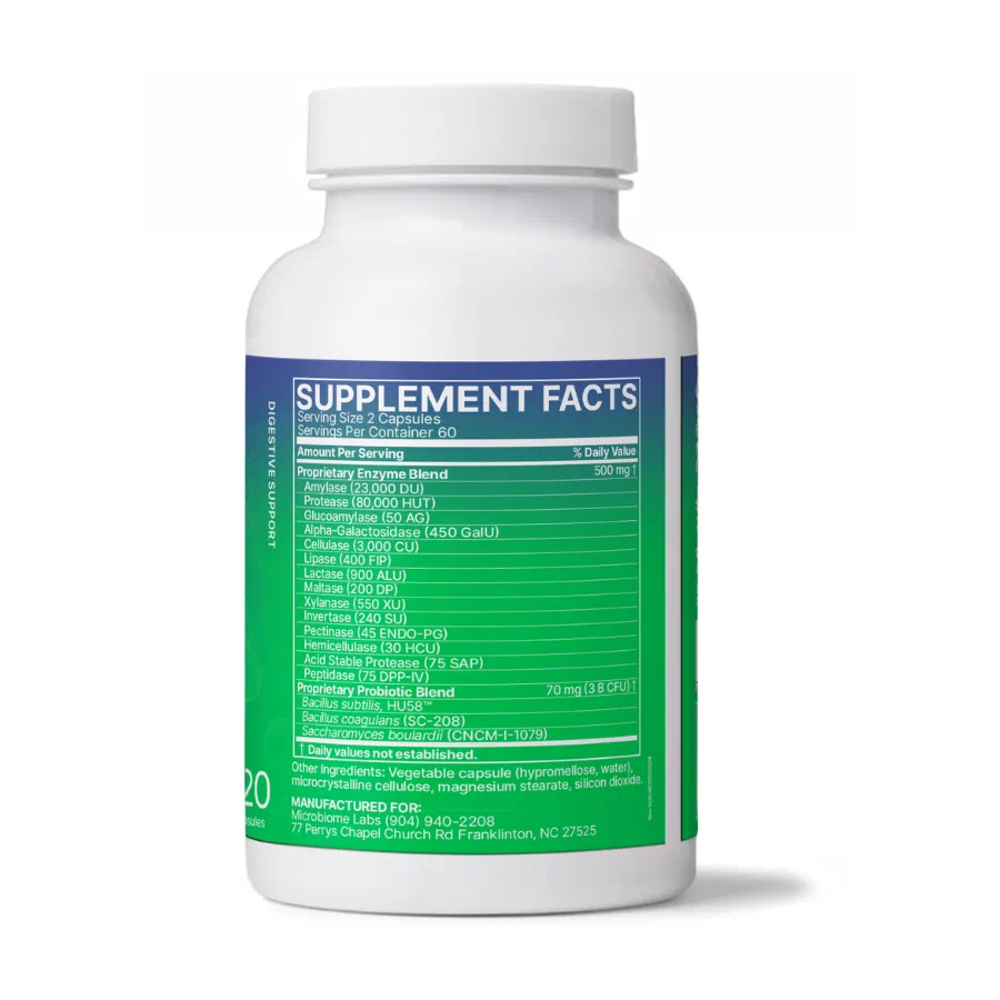 Esta combinación de esporas y levaduras ayuda a restaurar el equilibrio bacteriano, fortalecer la barrera intestinal y favorecer la regularidad.