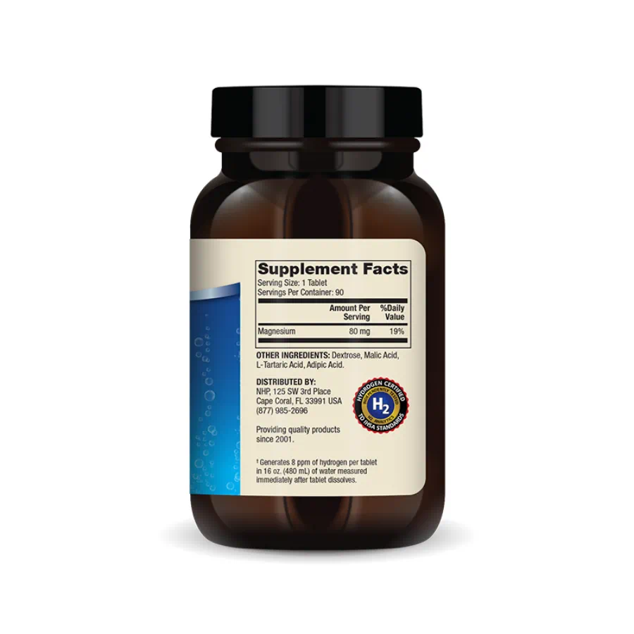 Este suplemento está formulado en tabletas efervescentes que liberan hidrógeno molecular al disolverse en agua, facilitando su absorción y aprovechamiento por el cuerpo.