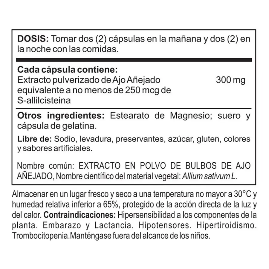 - Equivalente a no menos de 250 mcg de S-alilcisteína, su compuesto estandarizado.