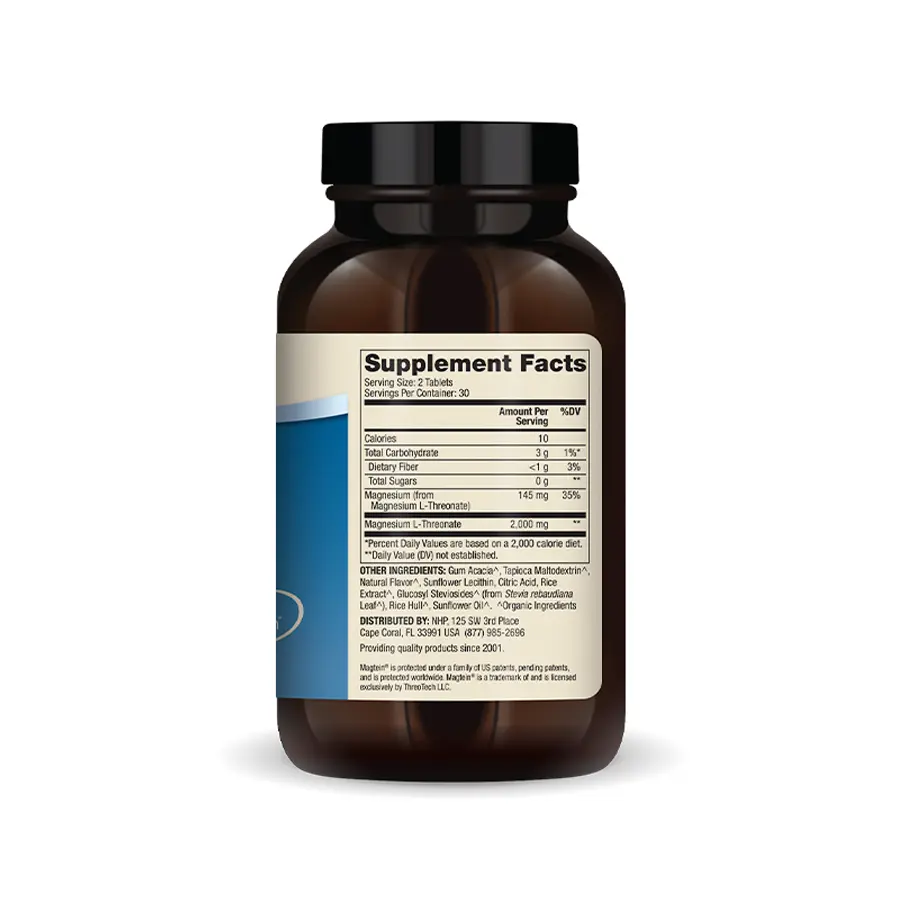 Magtein® Magnesium L-Threonate: 2000 mg por porción, con 145 mg de magnesio elemental.