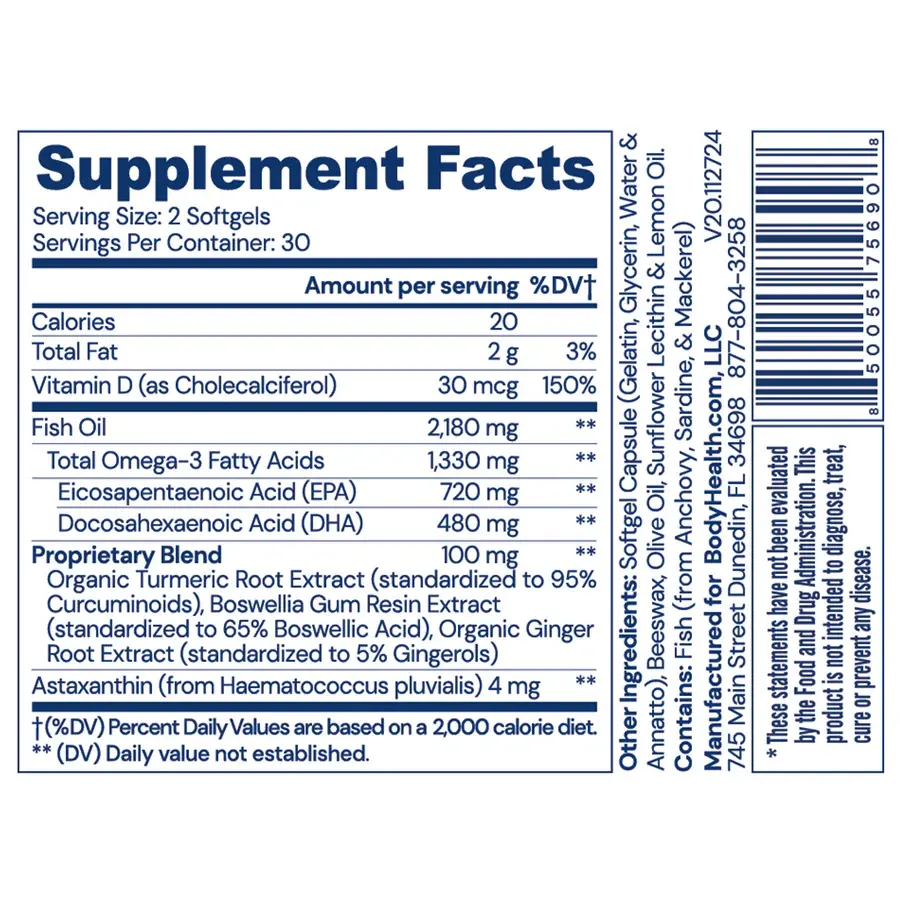 BodyHealth formuló Omega 3 con el objetivo de ofrecer una de las fuentes más puras y completas de Omega-3 del mercado, combinando aceite de pescado de la más alta calidad con antioxidantes y extractos botánicos para un perfil avanzado y altamente depurado.