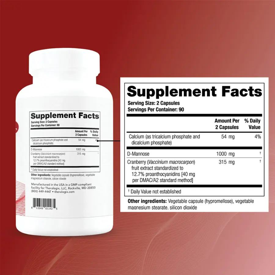 TheraCran® Max combina extracto de arándano estandarizado y D-Manosa pura para brindar una protección integral del tracto urinario, ayudando a prevenir infecciones y mantener un equilibrio saludable día a día.