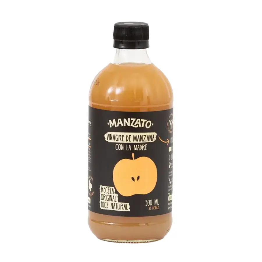 Diluir 2 tapitas o 2 cucharaditas del vinagre de manzana con “La Madre” en un vaso con agua.